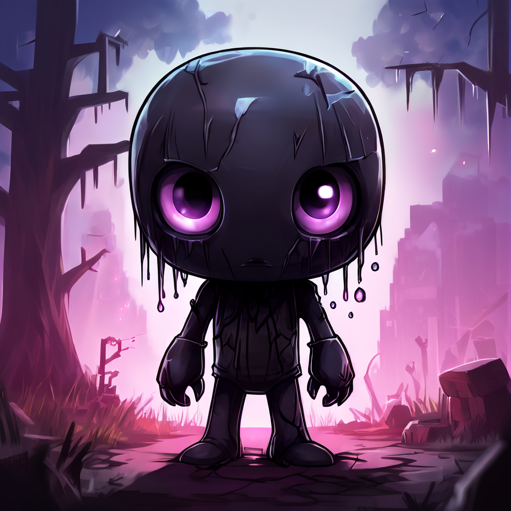Description: A young Enderwoman near the canyon river in the forest. She is laid-back and lazy, often lounging by the river instead of exploring. Her eyes shimmer with a calm violet glow, reflecting her relaxed nature.